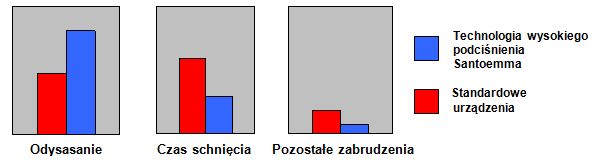 Czas schnięcia po czyszczeniu uzależniony jest w znacznej mierze od siły z jaką ciecz zostanie odessana z czyszczonej powierzchni. Specjalnie zaprojektowane silniki wysokiego podciśnienia High Waterlift, w które są wyposażone urządzenia Santoemma, pozwalają uzyskać dokładniejsze (powyżej 50%) odessanie cieczy z powierzchni niż to ma miejsce przy użyciu standardowych ekstraktorów. Pozwala to uzyskać bardzo krótki czas schnięcia, znacznie krótszy niż przy użyciu urządzeń dostępnych na rynku. Skróca się nie tylko czas schnięcia, ale również uzyskuje się lepszy efekt czyszczenia, ponieważ dokładne odessanie roztworu z włókien tkaniny to dodatkowe usunięcie brudu z czyszczonej powierzchni
