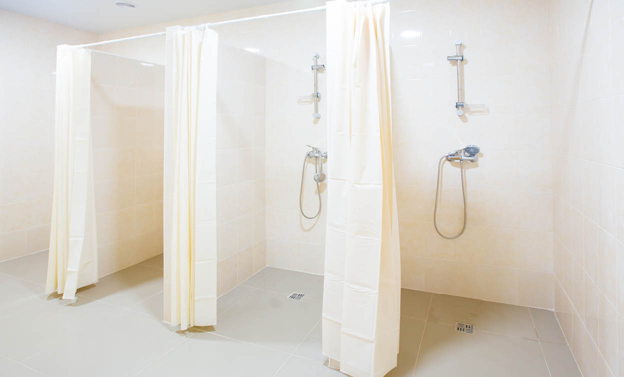 Spraying of foam on all the surfaces to be cleaned (walls, sanitary fixtures, showers and panes),
