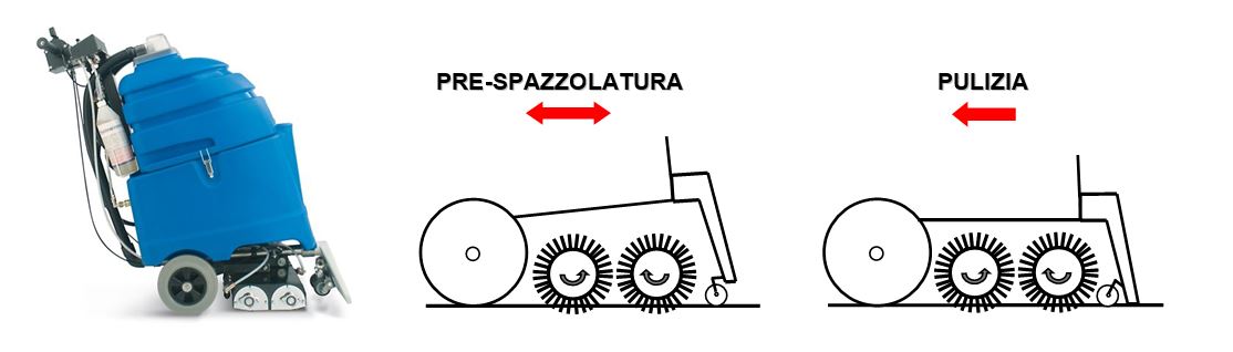 Con Charis-DUAL è anche possibile effettuare una energica pre-spazzolatura della moquette prima del lavaggio ad