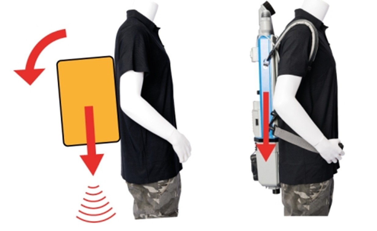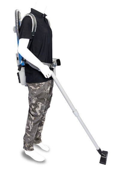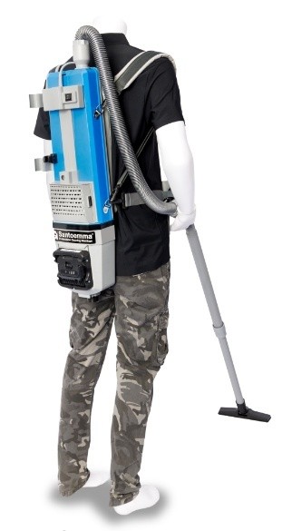 La struttura spallabile di OMNI consente all'operatore di pulire agevolmente anche in ambienti ingombri.