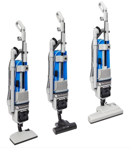 OMNI è la prima macchina al mondo che può funzionare sia come aspirapolvere spallabile che come scopa elettrica o come battitappeto professionale.