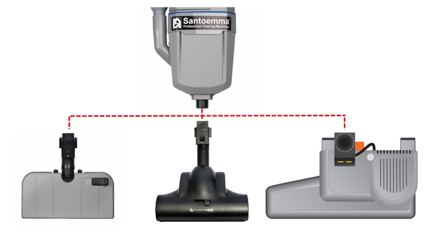L'ampia gamma di bocche d'aspirazione consente di trovare la soluzione ideale per qualsiasi tipo di pavimentazione, sia di moquette sia di pavimento duro.